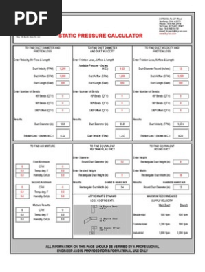 Download Free Static Pressure Calculator Very Useful For Hvac Engineer